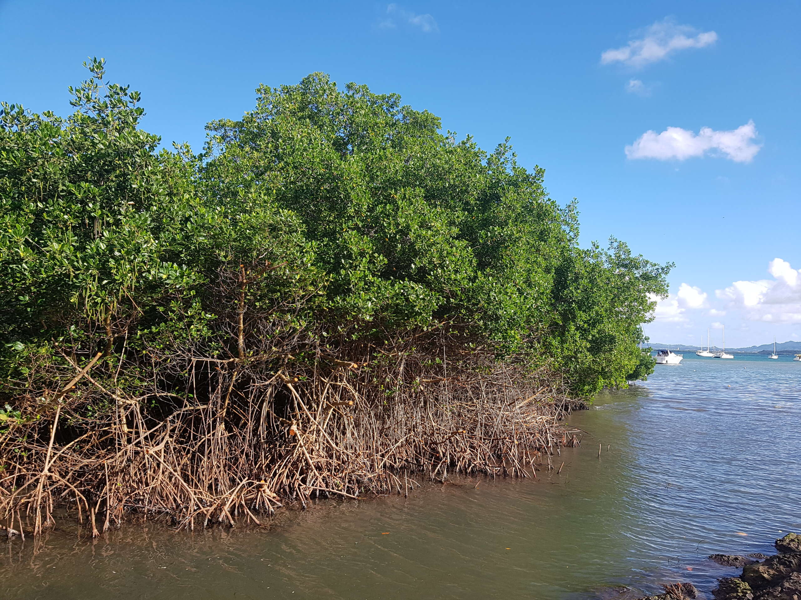 Différents types de palétuviers peuvent être admirés en Martinique : rouge, noir, gris et blanc. Certains préférant les zones les plus salées, d’autres se tenant un peu plus éloignés du rivage, là où le taux de salinité est un peu plus faible. Par-delà leurs charmes esthétiques, on ne peut qu’admirer les nombreuses fonctions services qu’ils apportent, estimés en Martinique en 2017 à plus de 215 millions d’Euros par an par l’Office De l’Eau, le Conservatoire du Littoral et le Vertigo Lab. Ces arbustes permettent de filtrer l’eau et de stabiliser les sols. Ils constituent un abri essentiel à la reproduction de nombreuses espèces. En Martinique, de nombreuses randonnées permettent d’admirer les zones de mangrove, notamment celles de la presqu’île de la Caravelle.